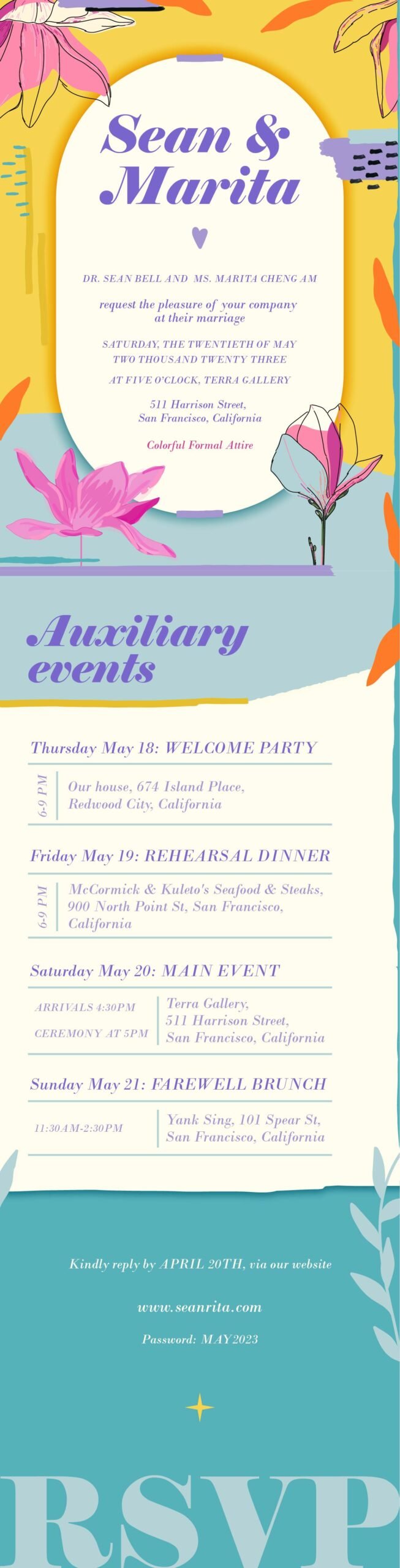Dizajn pozivnica za venčanje, inspirisain prirodom, jarkim bojama i apstraktnim oblicima.